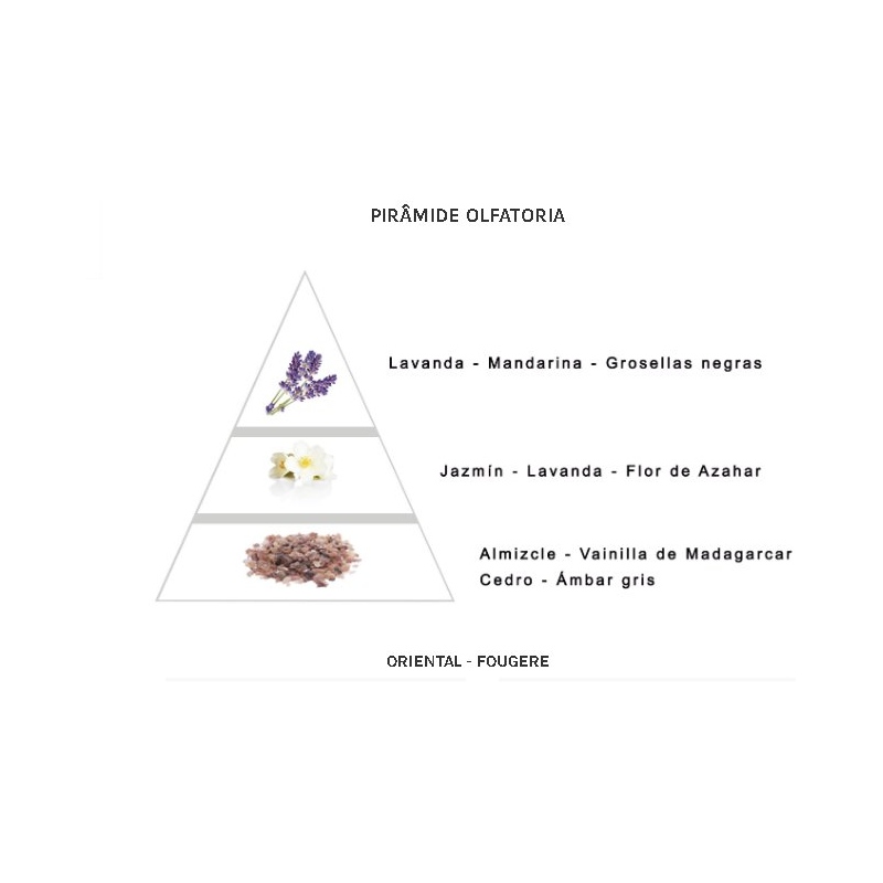 Notas de coração: Absoluto de flor marroquina, essência de lavanda francesa e samba de jasmim.